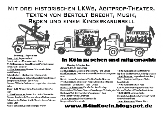 Am Montag den 8.September Kundgebung in Porz Zentrum ca. 11:30 - 12:15 Uhr Hauptstr. Karlstr. Josefstr. (siehe Plakat)