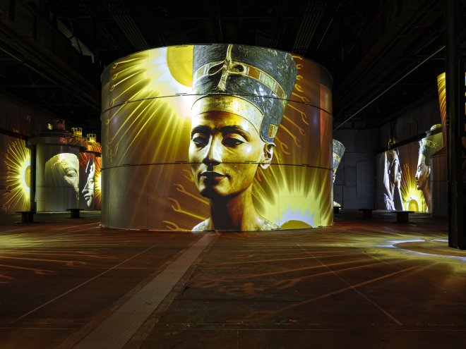 Dem Alltag entfliehen und in eine Welt voller lebendiger Geschichte, Kunst und Kultur eintauchen – das ermöglicht Phoenix des Lumières mit seiner neuen Hauptausstellung. Nach einer kurzen Umbaupause öffnet das Kunstzentrum am 24. Januar 2025 erneut seine Tore und lädt seine Gäste auf eine spektakuläre Reise durch die Zeit ein. Mithilfe modernster Technik – über 100 Projektoren, 28 Lautsprechern und einem passgenau zusammengestellten Soundtrack – erweckt die Ausstellung unter anderem das Alte Ägypten wieder zum Leben. Besucherinnen und Besucher können scheinbar zwischen monumentalen Pyramiden, geheimnisvollen Tempeln und prunkvollen Grabmälern umherwandern und sich von prächtigen Schmuckstücken und einer fast magisch wirkenden Welt inspirieren lassen.